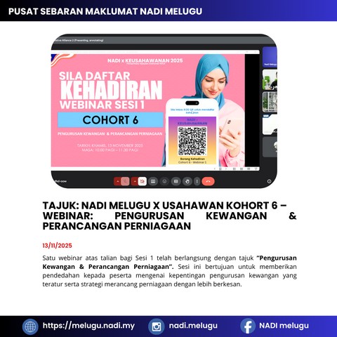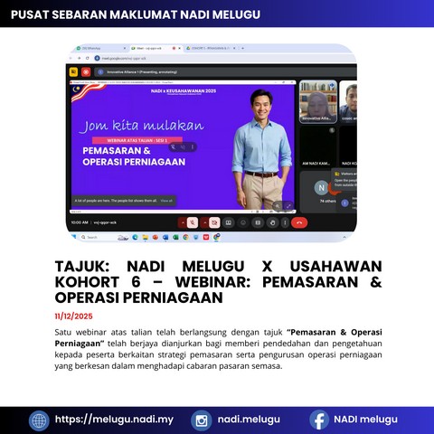 Nadi Melugu X Usahawan Kohort 6 – Webinar: Pemasaran & Operasi Perniagaan Untuk Tontonan Para Usahawan