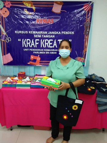 Selain itu, beliau turut menggunakan PI Melugu untuk mempamerkan produk hasil kraftangan beliau di tempat yang telah disediakan oleh PI bagi golongan usahawan.