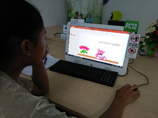 Oleh itu, adik Emillia Ginchi yang masih mengikuti PDPR telah mengambil peluang untuk menyertai kelas-kelas ICT di Pusat Internet Komuniti Melugu bagi memudahkannya menyiapkan kerja-kerja sekolah. Kini, beliau semakin yakin dan berkebolehan menggunakan Microsoft Words untuk membuat dan mengedit perkataan.