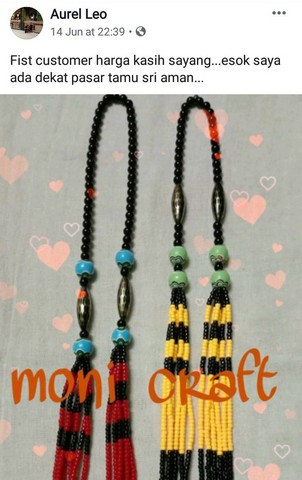 Pn. Moni anak Serit merupakan seorang usahawan yang berminat dan berbakat dalam membuat kraftangan bermanik. Beliau telah banyak menghasilkan kraftangan seperti rantai, gelang kaki dan tangan lalu menjual kraftangan tersebut di Pasar Tamu Sri Aman. Untuk sebarang pertanyaan atau tempahan, beliau boleh dihubungi di talian 0111-9884195 atau Facebook : Aurel Leo