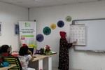 Dalam kelas ini, peserta mempelajari tentang huruf-huruf asas seperti huruf A – Z. Mereka juga diminta untuk menulis huruf-huruf yang disebut oleh Cikgu Dayang di atas kertas.