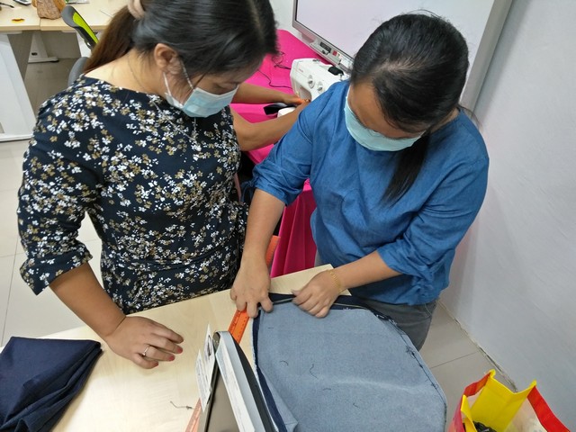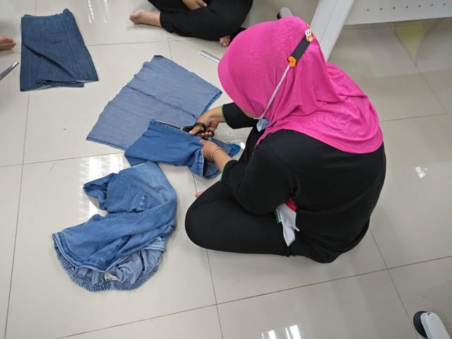 Program ini dimulai dengan pendaftaran peserta kursus oleh Cik Rosaini, Penyelia PIKOM, KEMAS Sri Aman dan sesi taklimat serta pengenalan kursus oleh Encik Kevin Lambai, Penyelia PIKOM, KEMAS Sri Aman. Taklimat ini merangkumi aktiviti yang akan diadakan selama 2 hari iaitu amali dan latihan membuat tote bag dan apron daripada kain jeans serta menghias kotak tisu daripada kain felt. En. Kelvin juga menerangkan mengenai prosedur operasi standard (SOP) yang perlu dipatuhi sepanjang kursus ini dijalankan. Dalam kursus ini, staff KEMAS telah menyediakan peralatan-peralatan seperti mesin jahit elektrik, alatan menjahit, kain jeans yang telah siap dipotong, tali beg, kain felt, kotak tisu, dan bahan-bahan untuk hiasan. Selain itu, terdapat juga peserta yang turut membawa peralatan menjahit sendiri dari rumah. Pada waktu pagi, peserta telah ditunjukkan amali cara-cara menjahit tote bag dari kain jeans menggunakan mesin jahit elektrik dan diminta untuk menjahit tote bag mereka sendiri mengikut apa yang telah ditunjukkan.