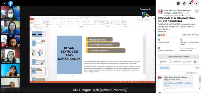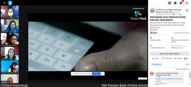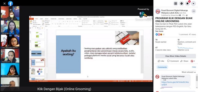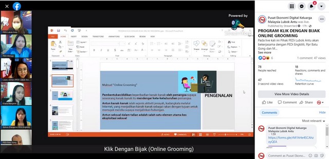 28 Februari 2022 | Aktiviti TerkiniPada 28 Januari 2022, Pusat Ekonomi Digital (PEDi) telah melaksanakan Program Klik Dengan Bijak iaitu Online Grooming dengan kerjasama dari PEDi Batu Gong, PEDi Engkilili dan PEDi Melugu secara atas talian di Facebook Page rasmi PEDi Lubok Antu menggunakan aplikasi Streamyard. Program ini berlangsung dari pukul 3.00 petang hingga 4.00 petang.