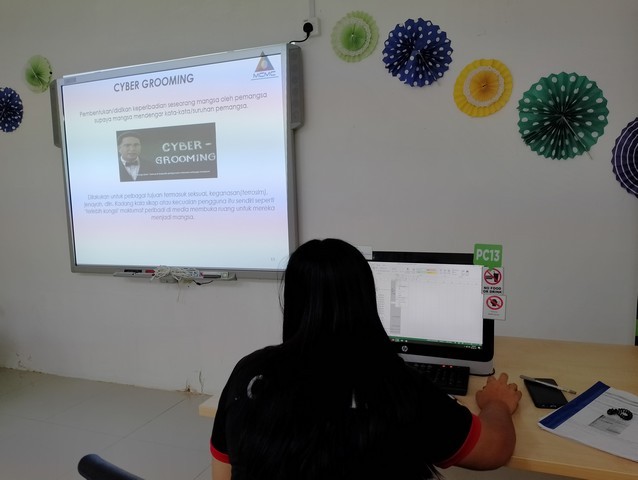 Beliau mempelajari tentang langkah-langkah yang perlu dilakukan sebelum mencetak dokumen seperti print preview, mengetahui jenis pencetak, bilangan muka surat yang ingin dicetak dan tetapan bagi muka surat dokumen. Peserta juga diminta untuk membuat latihan-latihan lain mengikut topik-topik yang telah dipelajari sebelum ini. Di samping itu, peserta kelas turut dididik dengan advokasi bertajuk cyber grooming iaitu beliau diterangkan tentang maksud pengantunan siber, jenis-jenis pengantunan, contoh-contoh pengantunan dan cara untuk mengelakkan diri daripada menjadi mangsa pengantunan di internet. Selain itu, peserta juga ditekankan untuk tidak menyebarkan berita atau maklumat palsu dengan memeriksan kesahihan maklumat tersebut melalui laman sesawang Sebenarnya.my.