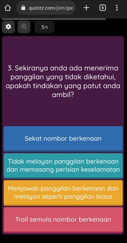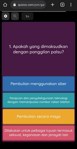 24 Julai 2022 | Aktiviti TerkiniPada 23 Julai 2022, Pusat Ekonomi Digital (PEDi) Melugu telah mengadakan kuiz advokasi secara dalam talian menggunakan aplikasi Quizizz.com. Kuiz ini bertujuan untuk mendidik peserta mengenai kepentingan mengetahui tentang kategori panggilan palsu. Aplikasi Quizizz.com merupakan aplikasi percuma yang digunakan dalam pendidikan yang bersifat interaktif yang boleh dimainkan menggunakan komputer, tablet atau telefon pintar.