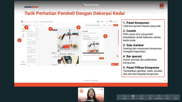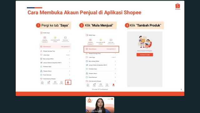 Setelah membuka akaun penjual, peserta ditunjukkan cara bagi menyediakan profil/latar belakang kedai penjual, bagaimana menarik perhatian pembeli dengan dekorasi kedai, cara menyenaraikan produk di pusat penjual dan cara terbaik untuk menamankan produk. Selain itu, peserta program juga diterangkan contoh gambar produk yang digalakkan dan tidak digalakkan, pilihan penghantaran dan gambaran keseluruhan penghantaran barangan yang telah dipesan oleh pelanggan.