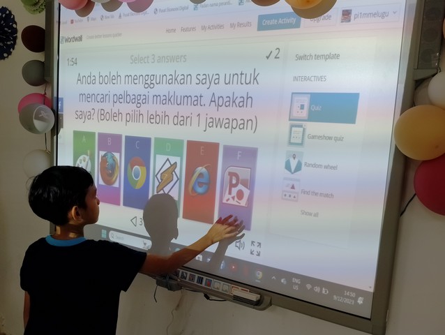 Dalam kelas ini, peserta dikehendaki untuk mengenalpasti dan memadankan perkataan yang betul tentang fungsi perisian komputer menggunakan template Quiz di laman web Wordwall. Peserta diminta untuk maju ke hadapan dan memadankan perkataan berkenaan di Smartboard. Markah akan dipaparkan setelah peserta menyelesaikan tugasan berkenaan.