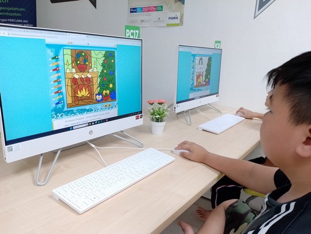 Kelas ini dimulai dengan pengenalan asas kepada permainan berbentuk pendidikan iaitu ABCya.com yang bersesuaian dengan peringkat umur peserta. Peserta telah memilih permainan bertajuk Christmas Fireplace Coloring iaitu permainan jenis matematik yang mengkehendaki peserta mewarna mengikut nombor untuk merangsang memori, perhatian, imaginasi dan kebolehan logika mereka. Peserta diminta untuk mewarna halaman tersebut sehingga selesai.