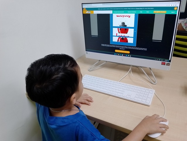 Kelas ini dimulai dengan pengenalan asas kepada permainan berbentuk pendidikan iaitu abcya.com yang bersesuaian dengan peringkat umur mereka. Mereka telah bermain teka-teki huruf dengan mengalihkan gambar untuk membentuk gambar yang betul di bahagian alphabet puzzle berbahasa Inggeris. Permainan alphabet puzzle ini mengikut turutan huruf dari A – Z.