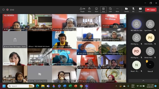 11 Ogos 2023 | Aktiviti TerkiniPada 10 Ogos 2023, Pusat Ekonomi Digital Keluarga Malaysia (PEDi) Melugu telah menyertai taklimat Microsoft Bersama Malaysia Initiative 2023 yang menggunakan platform Microsoft Team. Program ini merupakan kerjasama antara Microsoft, Biji-biji Inititiave, SKMM dan Pusat Ekonomi Digital (PEDi). Taklimat ini diadakan bertujuan untuk menerangkan kepentingan literasi digital yang dapat memperkasakan 300,000 pekerja digital dalam kalangan rakyat Malaysia dengan kemahiran digital.