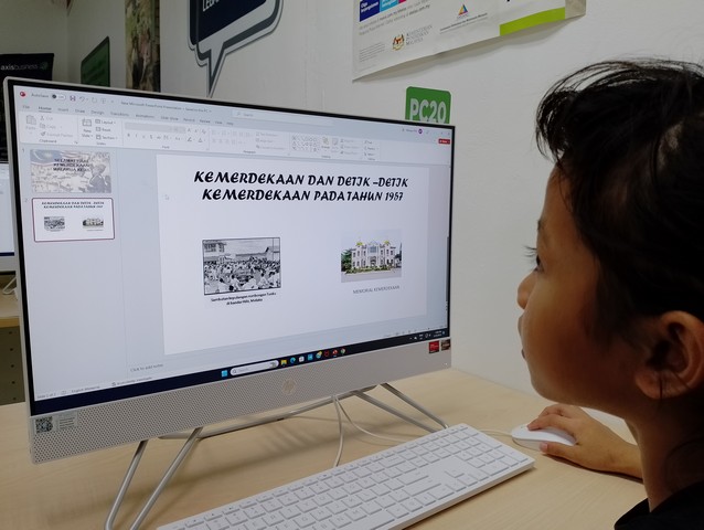 Mereka kemudian menghiasi laman sajak berkenaan berdasarkan kreativiti masing-masing mengikut pemahaman mereka menggunakan alatan dalam Microsoft Word. Selain itu, peserta juga telah menghasilkan slide kemerdekaan menggunakan Microsoft Powerpoint dimana mereka memasukkan elemen teks dan gambar pada slide masing-masing. Peserta kemudiannya diminta untuk mendeklamasikan sajak kemerdekaan yang terpapar di layar papan putih serta menyanyikan lagu Negaraku untuk menyemarakkan semangat patriotik dalam diri mereka bersempena dengan bulan kemerdekaan.
