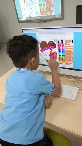 Dalam kelas ini, peserta telah diminta bermain permainan berbentuk pendidikan iaitu ABCya.com yang bersesuaian dengan peringkat umur mereka. Dengan memilih permainan bertajuk Make A Cake, peserta dikehendaki untuk menghasilkan kek bertemakan Selamat Hari Ibu dan Selamat Hari Guru dengan memasukkan elemen warna frosting, perhiasan seperti bunga, huruf alphabet dan lilin. Peserta juga telah bermain permainan Adventure Man Dungeon Dash – Shapes and Colors dimana mereka memilih kategori colors dan berlari untuk mengutip syiling lalu memasuki pintu mengikut warna yang telah dinyatakan pada awal permainan. Markah akan bertambah sekiranya memilih warna yang betul manakala Game Over sekiranya mereka salah memilih warna dan dapat memulakan permainan itu semula.