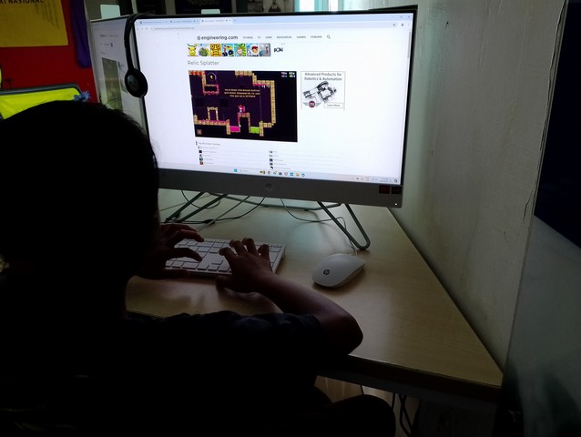 Dalam kelas ini, peserta telah bermain permainan berunsur pendidikan dalam laman web Engineering.com dengan memilih kategori STEM Game yang bertajuk Unroll Ball. Peserta diajar cara untuk mengheret dan menyusun kotak-kotak yang mempunyai aliran supaya bola besi dapat melalui aliran tersebut dan masuk ke ruangan terakhir untuk mara ke peringkat seterusnya.
