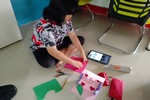 Dalam sesi pertama kelas ini, setiap peserta telah diberi beberapa helai kertas yang berlainan warna, gunting, gam, marker berwarna dan pensil warna untuk membuat kad ucapan Hari Ibu mengikut kreativiti masing-masing. Mereka dikehendaki untuk mencari idea bagi menghias kad ucapan tersebut dengan melayari Youtube dan Google.