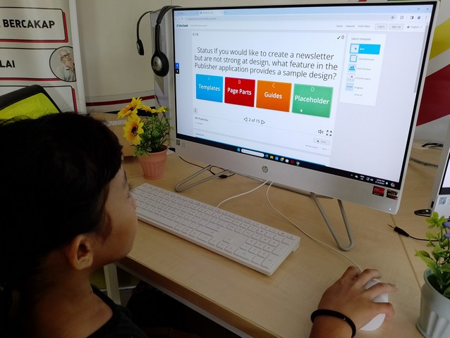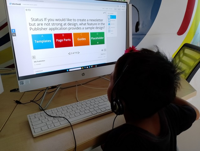 Dalam kelas ini, peserta telah diminta untuk membuka laman web Wordwall dan memilih kuiz Microsoft Publisher. Mereka dikehendaki untuk menjawab kuiz Microsoft Publisher mengikut nama yang betul menggunakan template Quiz. Markah akan diberikan selepas mereka selesai menjawab kesemua soalan yang dipaparkan.