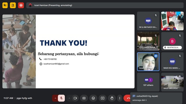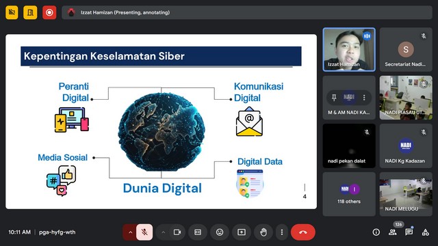 24 November 2024 | Aktiviti TerkiniPada 23 November 2024, beberapa orang pelajar yang merupakan ahli Pusat Sebaran Maklumat Nasional (NADI) Melugu telah menyertai sesi Webiner NADI x Cybersecurity yang diadakan secara maya menggunakan platform Google Meet. Webiner ini diadakan bertujuan untuk meningkatkan pengetahuan mengenai keselamatan penggunaan alam siber.