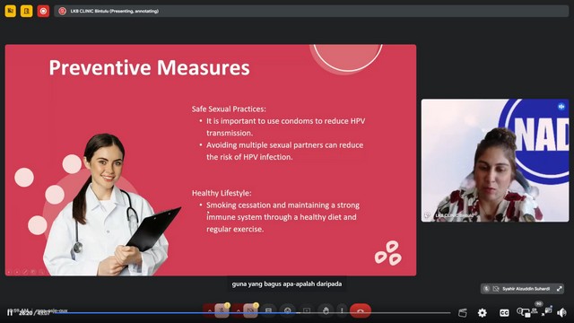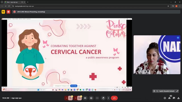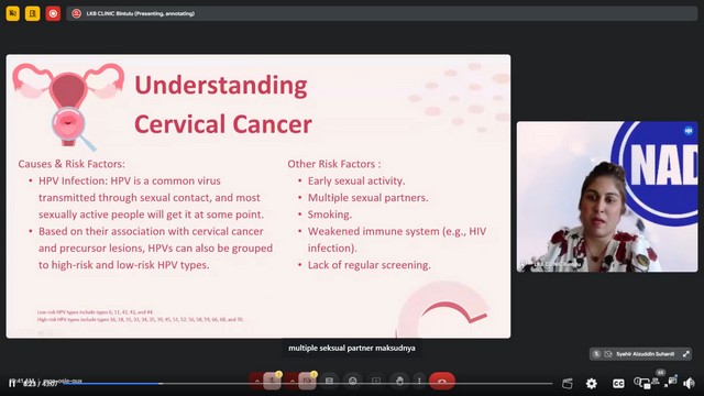 Sesi webinar kali ini telah dikongsi oleh Dr. Vaishinnee K Reddy yang merupakan Pengarah Program Perubatan Klinik LKB Bintulu. Dalam sesi perkongsian ini, beliau telah menjelaskan mengenai apa itu kanser serviks, memahami kanser serviks, symptom atau tanda-tanda, rawatan yang bersesuaian dan langkah pencegahan untuk mengelakkan diri daripada menghidapi penyakit kanser serviks.