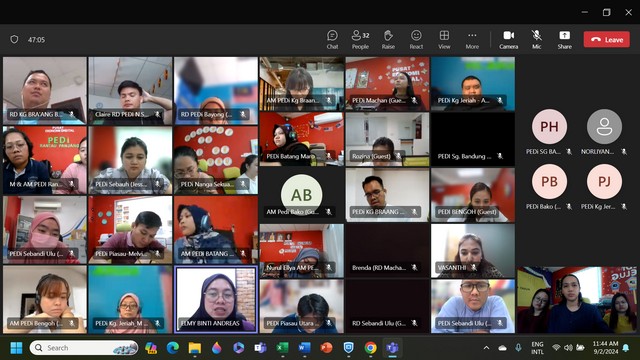 10 Februari 2024 | Aktiviti TerkiniPada 9 Februari 2024, Pusat Ekonomi Digital (PEDi) Melugu telah menyertai sesi taklimat secara maya mengenai Quarter 1 yang diadakan oleh pihak pengurusan Sprintz Designs Sdn Bhd melalui aplikasi Microsoft Team. Taklimat ini bertujuan untuk menerangkan mengenai isu-isu berbangkit yang melibatkan skop pekerjaan petugas-petugas di PEDi.