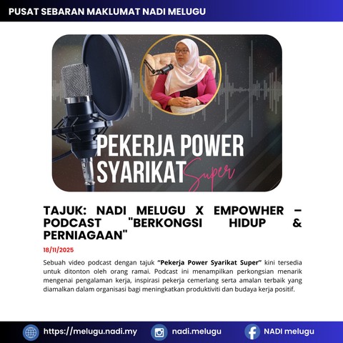 19 November 2025 | Aktiviti TerkiniSebuah video podcast dengan tajuk “Pekerja Power Syarikat Super” kini tersedia untuk ditonton oleh orang ramai. Podcast ini menampilkan perkongsian menarik mengenai pengalaman kerja, inspirasi pekerja cemerlang serta amalan terbaik yang diamalkan dalam organisasi bagi meningkatkan produktiviti dan budaya kerja positif.