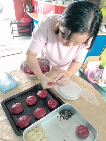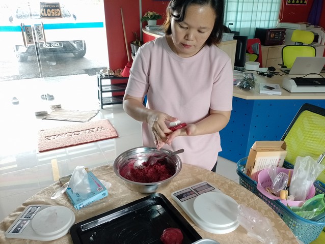 Dalam kelas minggu ini, Cikgu Ros telah membimbing peserta langkah demi langkah untuk membuat Red Velvet Soft Cookies berdasarkan bahan-bahan mentah yang dibawa sendiri oleh peserta.