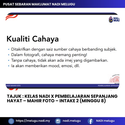 Kelas NADI x Pembelajaran Sepanjang Hayat – Mahir Foto – Intake 2 (Minggu 8)