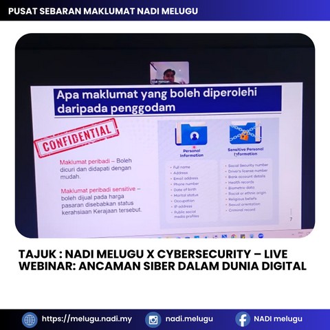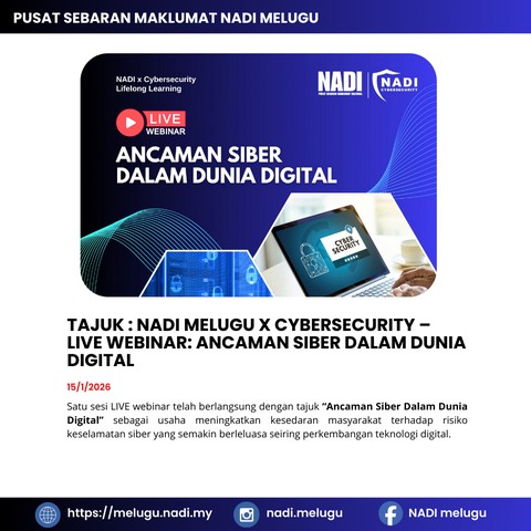Satu sesi LIVE webinar telah berlangsung dengan tajuk “Ancaman Siber Dalam Dunia Digital” sebagai usaha meningkatkan kesedaran masyarakat terhadap risiko keselamatan siber yang semakin berleluasa seiring perkembangan teknologi digital.