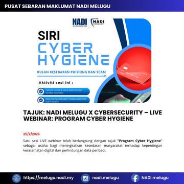 25 Februari 2026 | Aktiviti TerkiniSatu sesi LIVE webinar telah berlangsung dengan tajuk “Program Cyber Hygiene” sebagai usaha bagi meningkatkan kesedaran masyarakat terhadap kepentingan keselamatan digital dan perlindungan data peribadi.