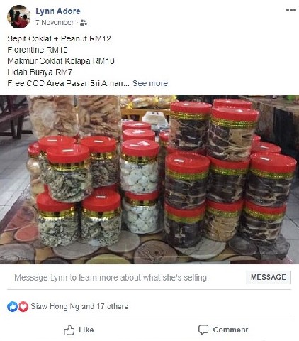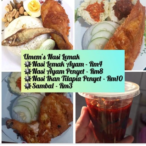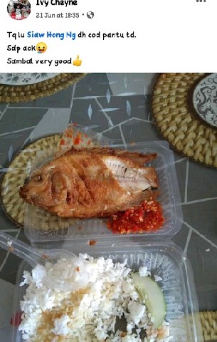 Pn. Ng Siaw Hong merupakan seorang suri rumah yang berminat dalam penjualan barangan secara online. Beliau telah menjalankan perniagaan penjualan nasi lemak secara COD ke sekitar kawasan Melugu dan kawasan-kawasan yang lain mengikut permintaan pelanggannya dengan harga yang berpatutan. Antara menu yang ditawarkan adalah seperti nasi lemak ayam, nasi ayam penyet dan nasi ikan tilapia penyet. Beliau boleh dihubungi di talian 012-8893129 atau layari Facebook Siaw Hong Ng untuk tempahan atau pertanyaan.