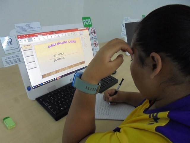Oleh itu, adik Emillia Ginchi yang masih mengikuti PDPR telah mengambil peluang untuk menyertai kelas-kelas ICT di Pusat Internet Komuniti Melugu bagi memudahkannya menyiapkan kerja-kerja sekolah. Kini, beliau semakin yakin dan berkebolehan menggunakan Microsoft Words untuk membuat dan mengedit perkataan.