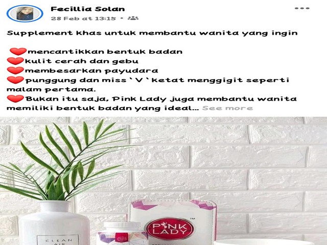 Fecilla Solan anak Parry merupakan seorang pelajar sekolah menengah yang menjadi ejen bagi sebuah produk kesihatan PinkLady sebagai pendapatan sampingan. Sebagai seorang dropship produk kesihatan, beliau menggunakan Facebook dan WhatsApp sebagai platform untuk menjual produk. Pelanggan yang berminat untuk membeli produk tersebut boleh menghubungi beliau di talian 017-6600258 atau di laman sosial Facebook untuk tempahan atau pertanyaan.